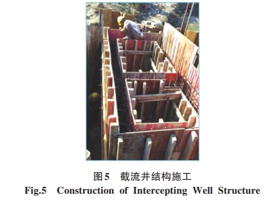 施工準備→截流井土建施工(圍堰、河道清淤、地基處理、井室結構)→閘門和啟閉機等設備安裝→PLC控制柜等電氣安裝→單座截流井調試→系統遠控聯動調試→驗收。3.1 截流井土建施工