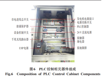 PLC電氣控制柜由總開關、電源接口和切換開關、浪涌保護器、PLC控制器、千兆無線路由器、接觸器、繼電器、USP電源等元器件組成。PC即可編程邏輯控制器,是電氣設備自動化控制的核心”,執行對電氣設備的運行邏輯控制、時間控制、模擬控制等控制功能:USP是一種高質量、高可靠性的獨立電源,通過將市電交流電整流后儲存;繼電器作為指令中轉站通過指令信號達到預定動作效果,實現電氣設備自動化;接觸器一般是內部的吸合線圈來控制它的動作與否,而控制線圈又與各種類型的繼電器串接來操作:網絡傳輸采用千兆無線路由器,提高無線傳輸速率,增強了系統運行的安全性,保證遠程中央計算機的監控系統穩定可靠地運行:成套柜裝有專用接地銅排,與柜體連接成電氣通路,且應用等截面的銅排與配電、控制柜基礎接地干線扁鋼牢固連接,如圖6所示。3.3.2 控制柜安裝和功能檢測