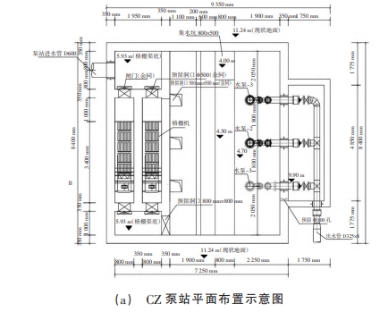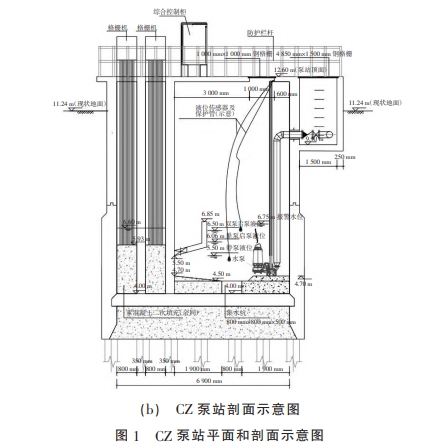 CZ 泵站位于河涌邊,原屬于潮州某污水處理廠的污水泵站,因污水處理廠周邊存在外江堤防、橋梁等因素,無(wú)法采用傳統(tǒng)重力流進(jìn)污水廠,因此采用污水泵站提升后用壓力管過(guò)外江堤防和橋梁橋墩群。CZ 泵站進(jìn)水管管徑 D600,管底標(biāo)高 6.63 m,地面標(biāo)高 11.24 m,埋深約 4.61 m。