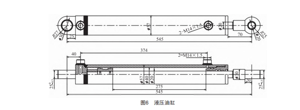 3)液壓油缸的設計:確定油缸直徑、油缸行程、工作壓力、油缸的安裝方式等參數,據此設計液壓油缸(圖6