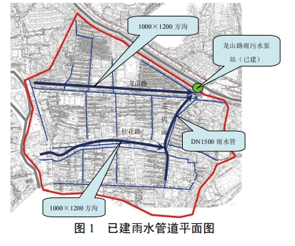 已建龍山路雨污水泵站為全地下式雨污水合建泵站,雨水泵站規(guī)模為 1.0m/s,污水泵房規(guī)模為 5萬(wàn) m'/d。自建成至今,泵站總體運(yùn)行正常。但由于北渠抬水工程正處在實(shí)施階段,實(shí)施后北渠水位抬高,地區(qū)雨水將無(wú)法自排入渠,龍山路泵站泵排能力無(wú)法滿足區(qū)域內(nèi)雨水的排放要求,