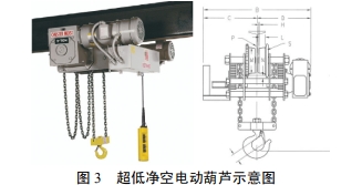 本工程受泵站內(nèi)空間限制,選用普通電動(dòng)葫蘆難以滿足安裝要求,需選用超低凈空電動(dòng)葫蘆,
