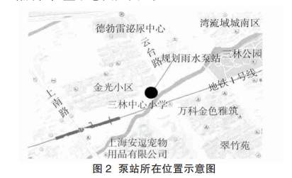 根據(jù)《三林地區(qū)金光雨水排水系統(tǒng)規(guī)劃--專業(yè)規(guī)劃》,金光區(qū)域采用雨污分流的排水系統(tǒng),雨水為強(qiáng)排模式,泄水面積為 165 hm',暴雨重現(xiàn)期P=5 a,雨水泵站設(shè)計(jì)規(guī)模為 15.47 m/s。規(guī)劃雨水泵站設(shè)置在云臺(tái)路、三林塘港交叉口的西北角泵站占地約3545.6m,雨水經(jīng)提升后排人規(guī)劃三林塘港。根據(jù)上海市水務(wù)局相關(guān)規(guī)定,在雨水泵站內(nèi)設(shè)置旱流污水截流設(shè)施,截流設(shè)施設(shè)計(jì)規(guī)模0.31萬 m'/d(見圖1)。